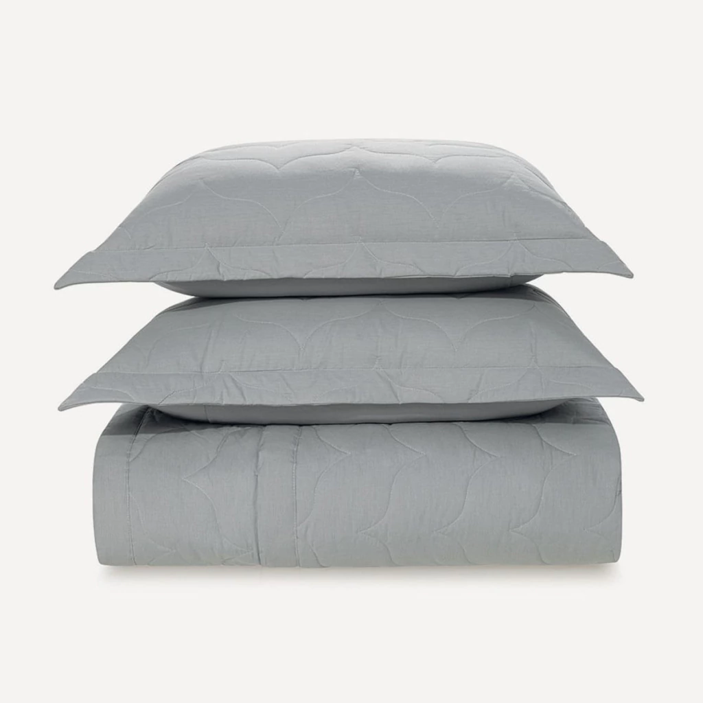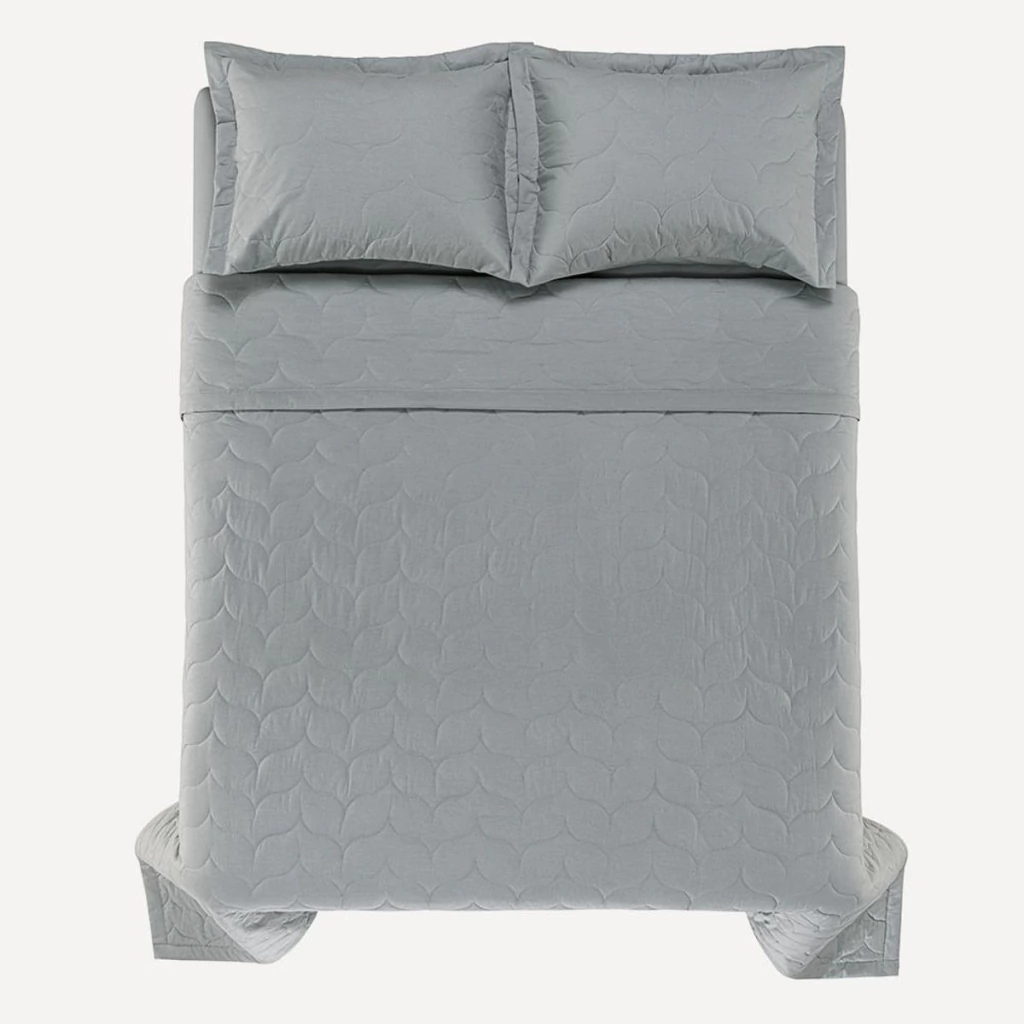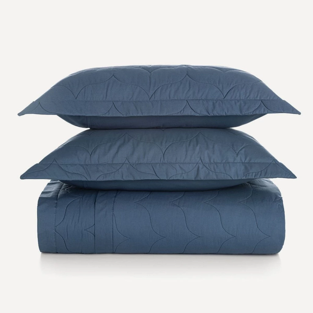 O acabamento matelassado com tecnologia termobond mantém o enchimento uniforme e garante maior durabilidade, enquanto o tecido percal soft proporciona uma textura encorpada e agradável. Os cantos quadrados da colcha reforçam o design moderno e elegante, tornando a peça um destaque no quarto.