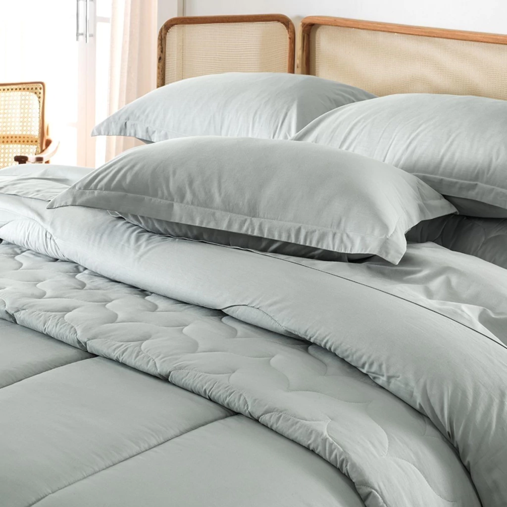 A Colcha Casal com 2 Porta-Travesseiros 200 Fios Tom une conforto, elegância e qualidade superior em um só conjunto. Confeccionada em 100% algodão fio penteado, oferece um toque macio e suave, além de ser antipilling, hipoalergênica e altamente respirável — ideal para noites de descanso tranquilas.
