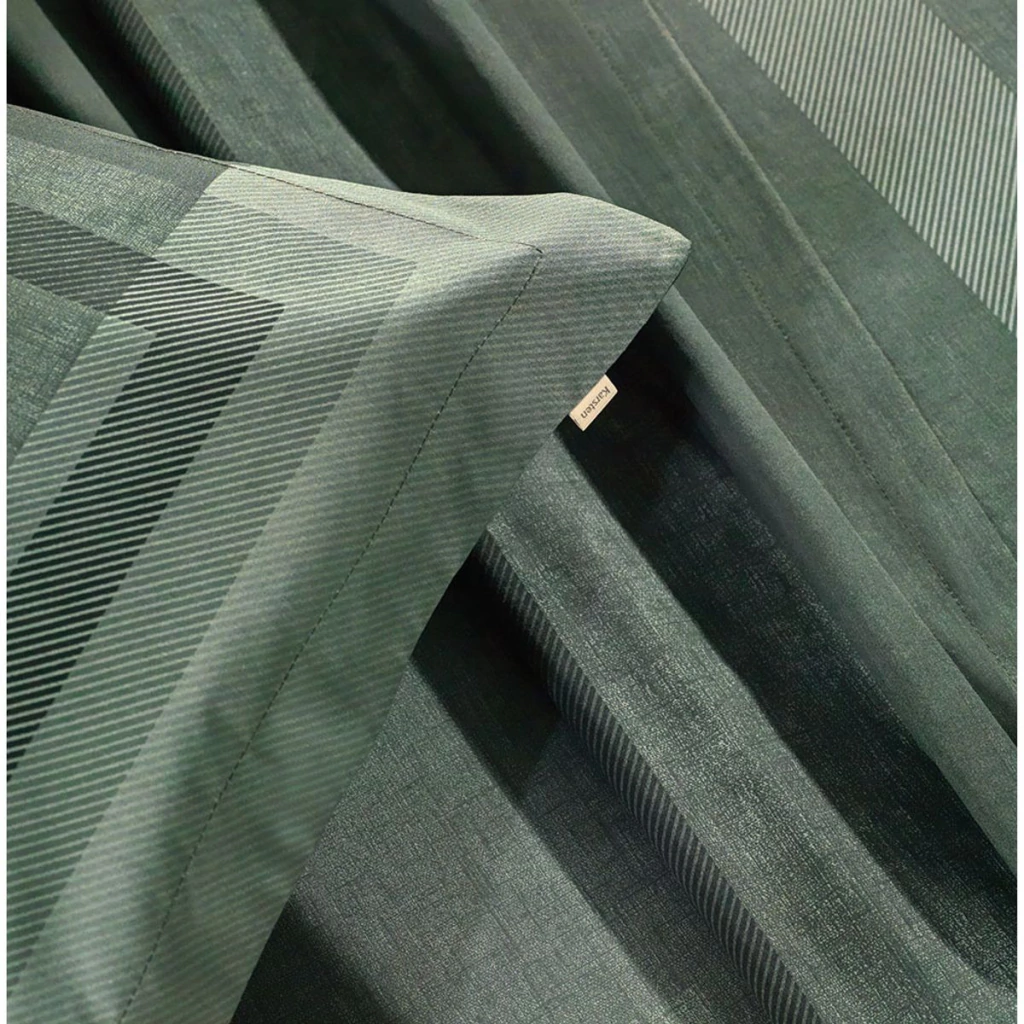 O Jogo de Colcha Queen Ícaro combina design contemporâneo e personalidade marcante em uma proposta visual moderna e elegante. Suas listras horizontais em tons profundos de verde trazem ritmo e presença à decoração, criando um ambiente sofisticado e atual. A colcha é dupla face, apresentando no verso um fundo verde com textura geométrica que permite alternar o visual da cama conforme a ocasião.