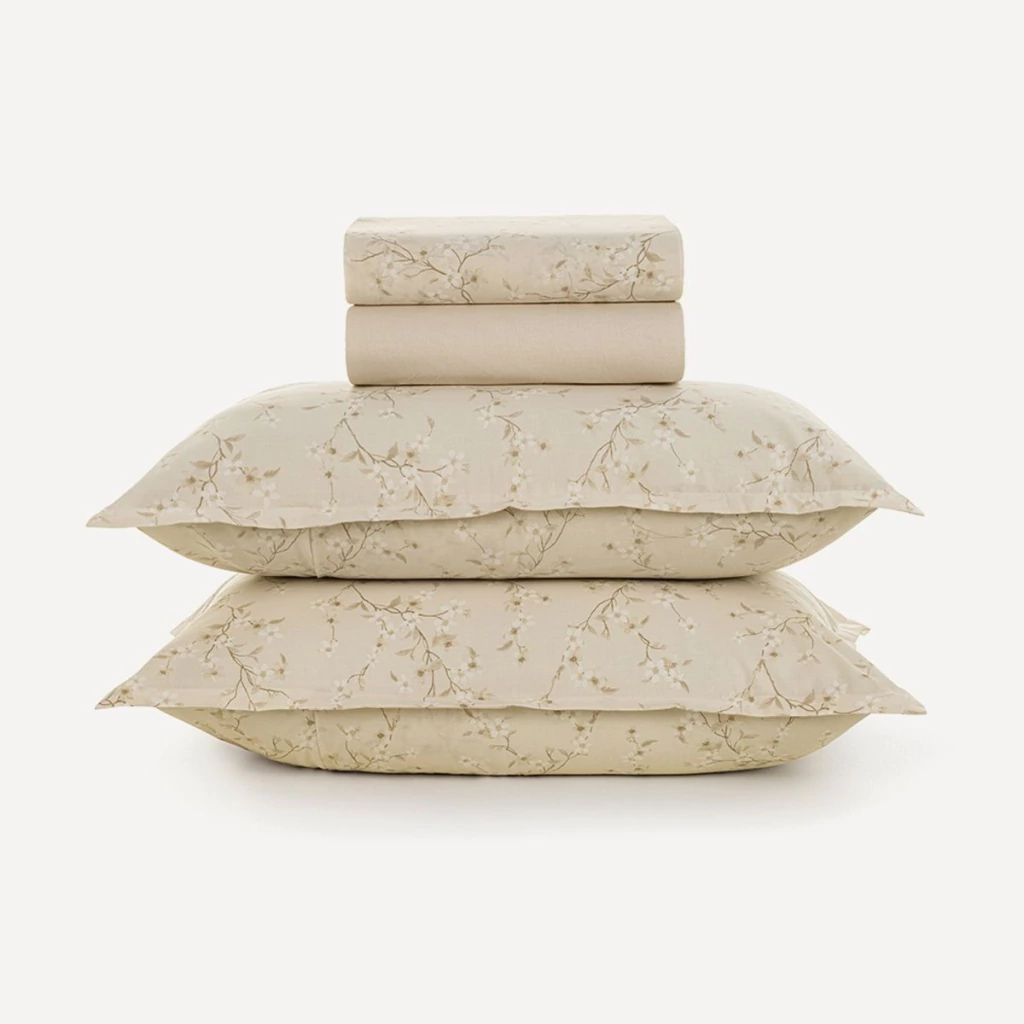 O Jogo de Cama Solteiro Beatriz é a combinação perfeita entre delicadeza, conforto e qualidade. Sua estampa floral em tons neutros transmite uma sensação de calma e bem-estar, criando um ambiente acolhedor e cheio de charme. As fronhas com abas discretas garantem um acabamento elegante, enquanto o lençol com elástico, estampado com um poá suave e irregular, adiciona um toque romântico e harmonioso à composição.