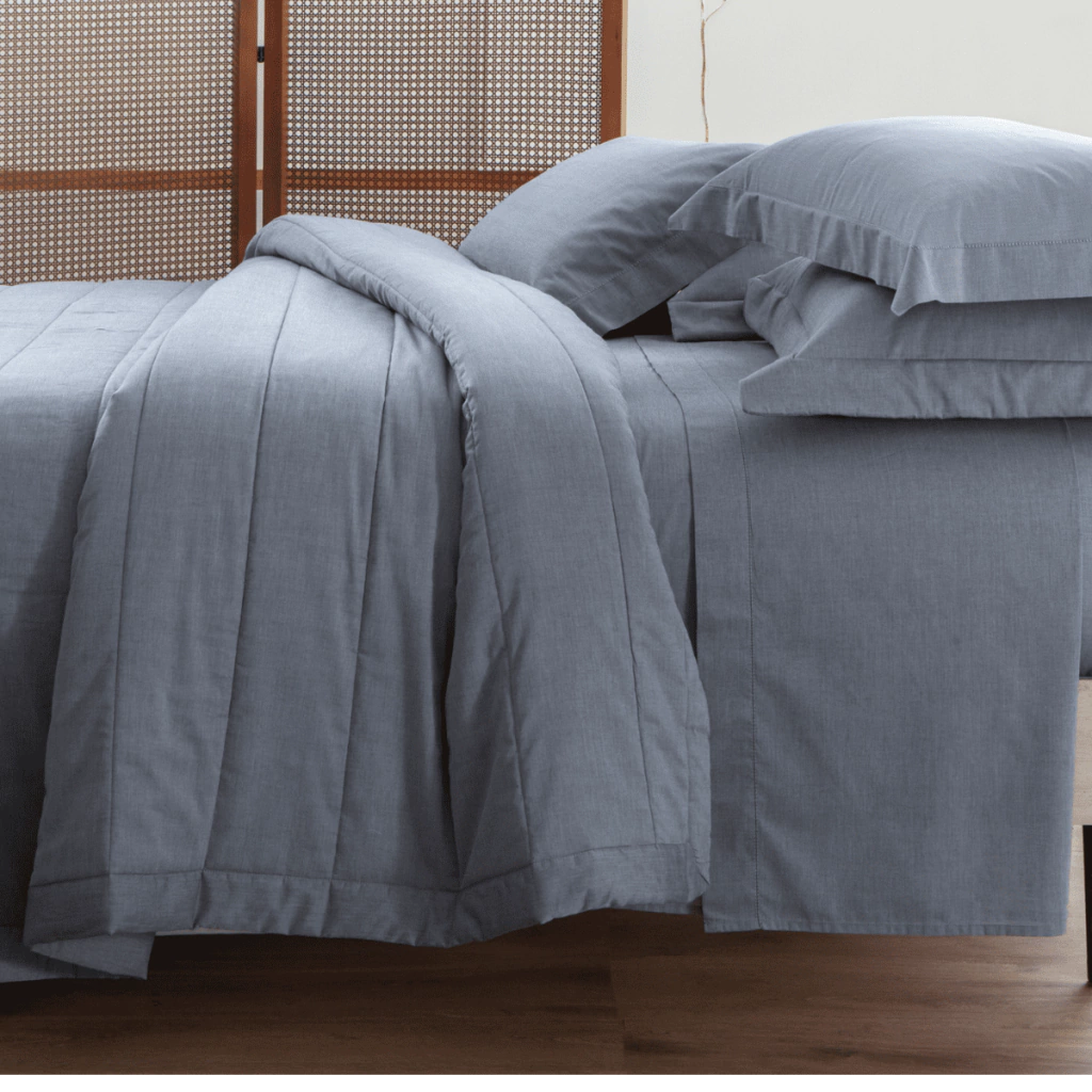 Inspirado na sofisticação francesa, este jogo de lençol é confeccionado com 100% algodão 200 fios, garantindo maciez incomparável e durabilidade. O tecido Chambret, com seus fios tintos e uma mescla única de tons, traz um toque de charme e aconchego para o seu quarto.