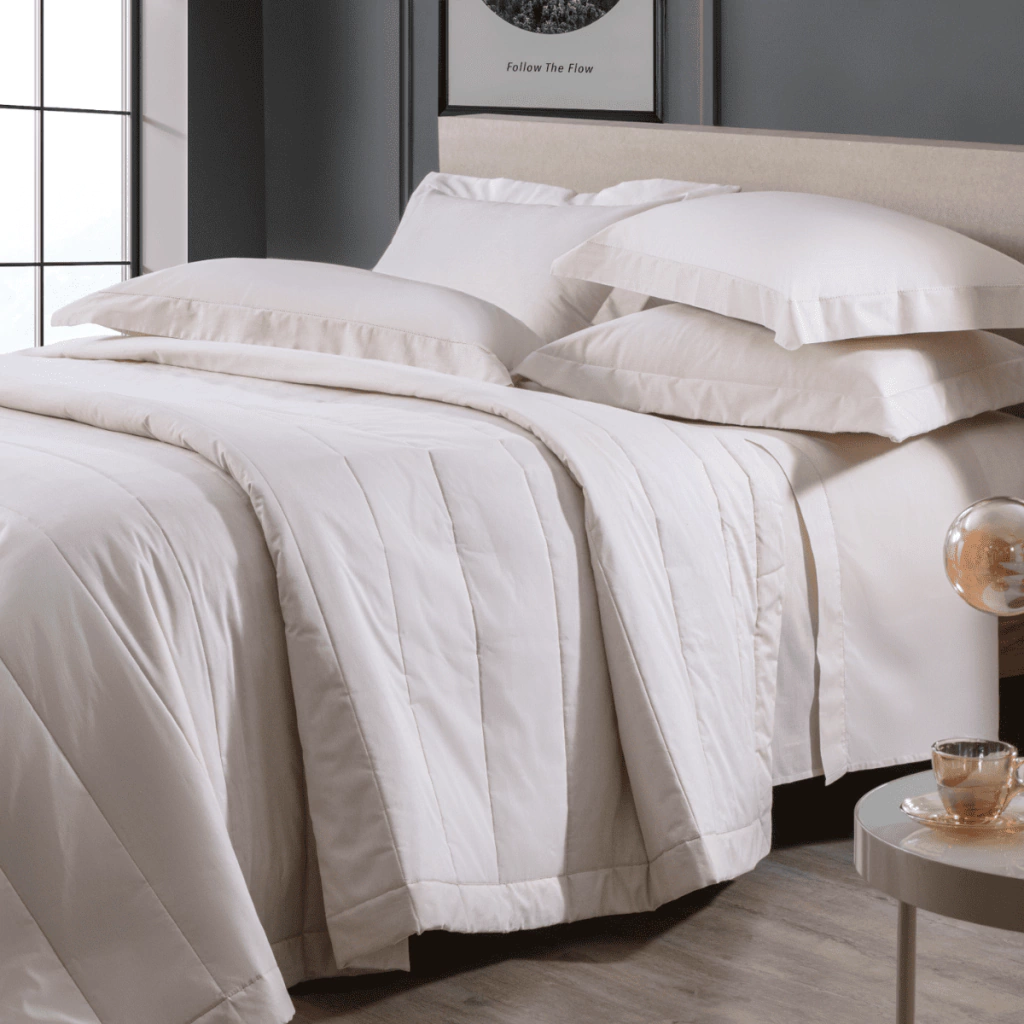 Sinta a suavidade do algodão importado em sua pele e desfrute de noites de sono mais relaxantes e revigorantes. O acabamento superior, com ponto ajour nas abas das fronhas e lençol com vira e pala, confere um ar sofisticado e elegante ao conjunto. Além disso, o tecido Chambret é hipoalergênico, ideal para quem possui pele sensível.