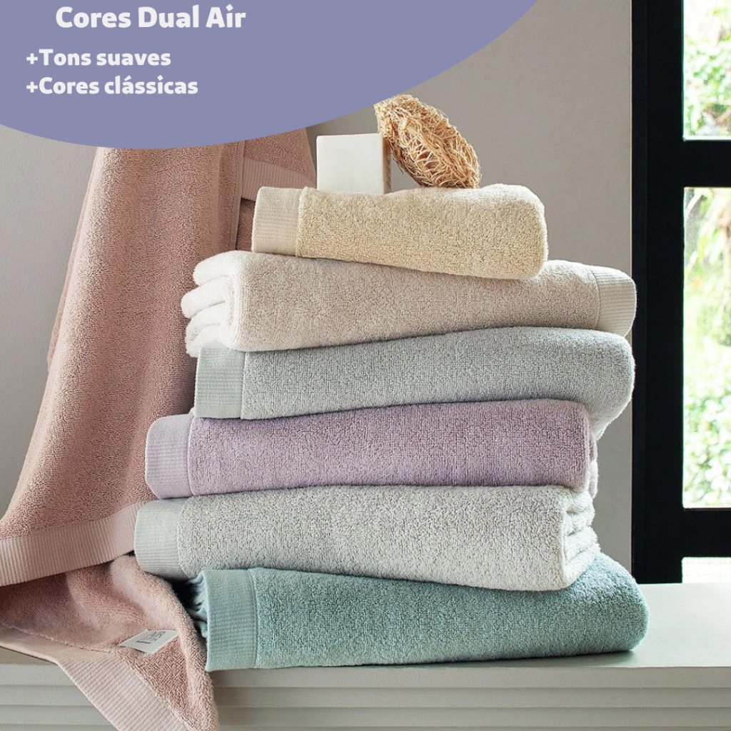 Toalha Gigante Dual Air. As toalhas Dual Air da Buddemeyer tem como maior diferencial duplo toque, é um blend especial da Buddemeyer. Um dos lados com fios de baixa torção que proporcionam super maciez e do outro lado com fios e acabamentos de alta performance, Air Cotton é um novo conceito em toalhas de banho. Volumosa, extremamente macia e surpreendentemente leve. Por ser aerada, tem altíssima hidrofilidade, mantendo a naturalidade do toque da pluma de algodão. Essa tecnologia está presente na nova toalha Dual Air, feita com 100% algodão e qualidade Buddemeyer. Pré-lavada e pré-encolhida. Acabamento especial Buddemeyer que confere alta capacidade de absorção além de brilho natural que realça as cores. A Buddemeyer é referência em qualidade e estilo.