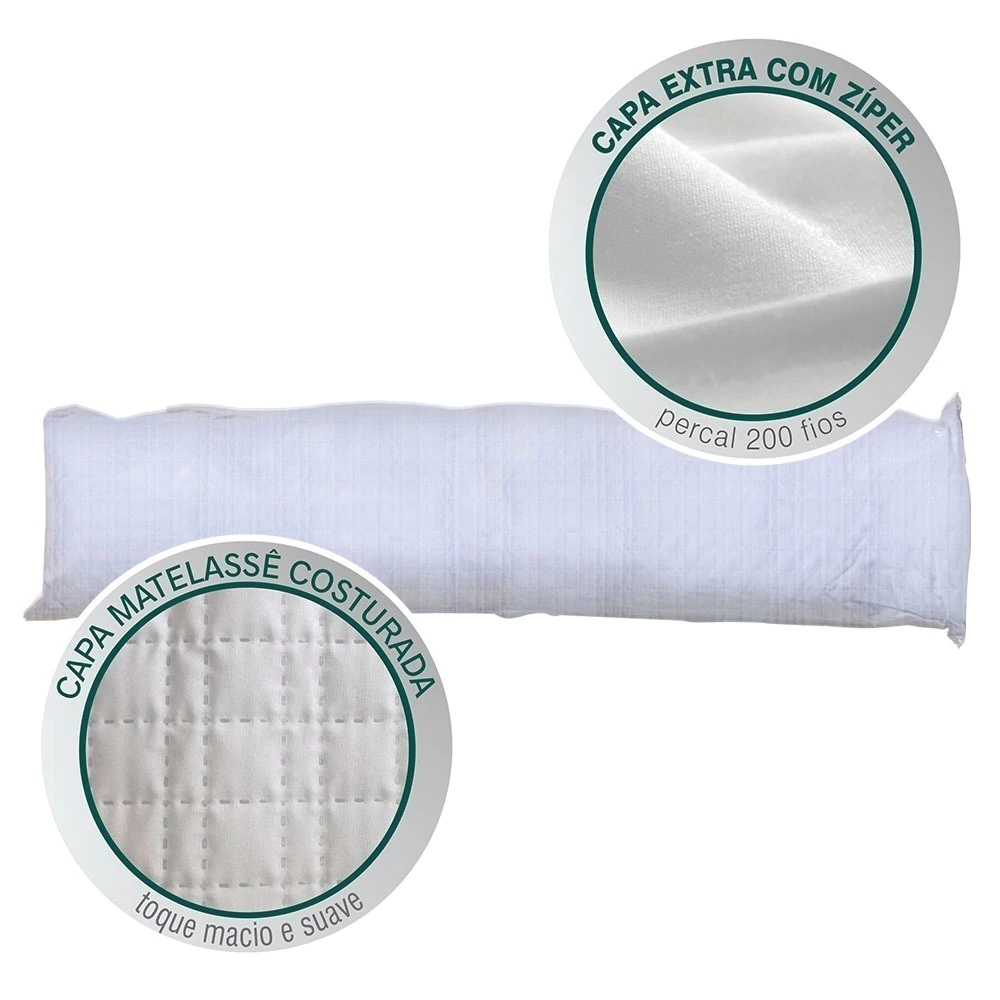Seu interior é preenchido com espuma de poliuretano, garantindo maciez e sustentação na medida certa. Possui capa costurada em matelassê 100% poliéster e acompanha uma capa extra em percal 200 fios 100% algodão com zíper, resistente a líquidos e ideal para ser usada diariamente. Essa capa protege o travesseiro contra suor e outras secreções naturais do sono, prolongando sua durabilidade e mantendo a sensação de frescor por muito mais tempo.